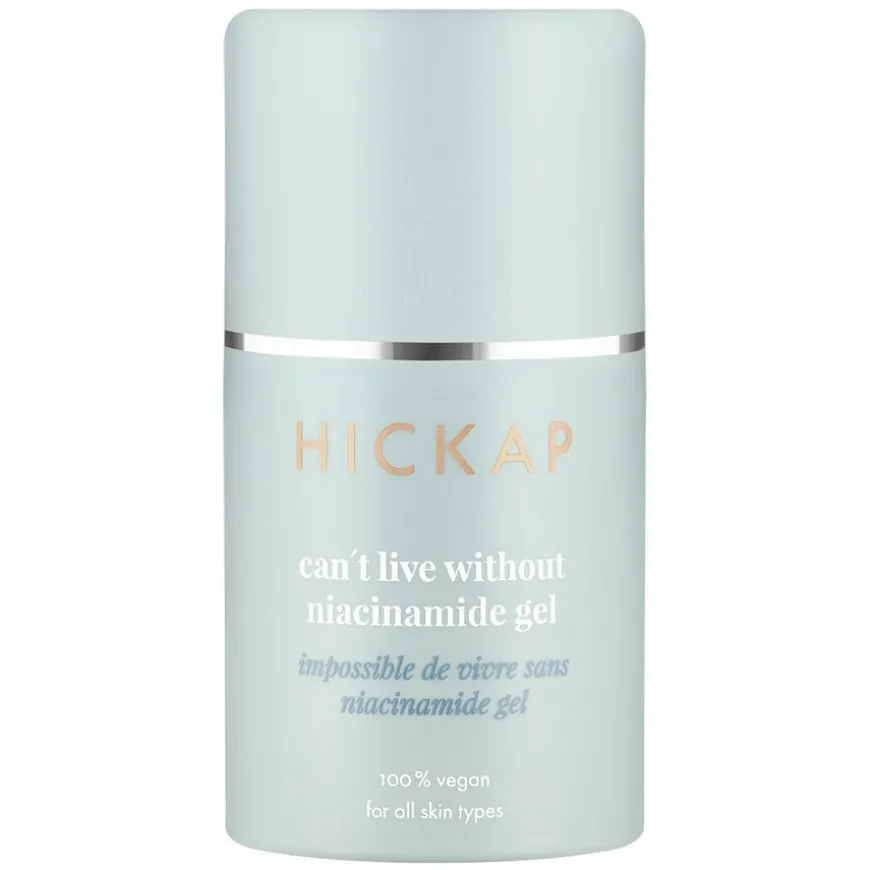 Can’t Live Without Niacinamide Gel er et universalprodukt som passer for alle! Hickaps fuktighetsgivende og barrierestyrkende gel bidrar til klarere hud med reduserte porer og utjevnet hudtone. Den beroligende gelen inneholder 5% niacinamid og 5% panthenol, og bidrar dessuten til å redusere inntrykket av rødhet og urenheter. Den lette gelkremen inneholder også hyaluronsyre og squalane, som fukter og mykgjør huden og bidrar til en fin glød.