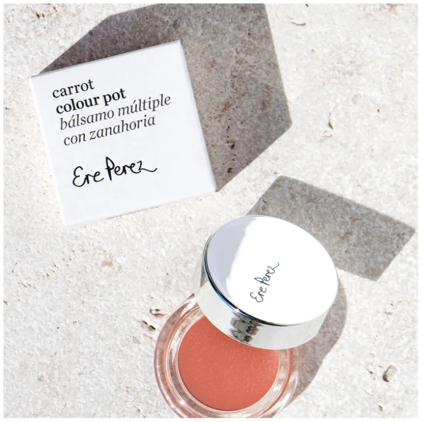 Carrot Colour Pots er en pigmentert kombinasjon av blush og leppestift som inneholder fuktighetsgivende gulrot. Den veganske formelen gir en behagelig myk krem som på huden blir lett matt og gir langvarig farge til både kinn og lepper. Denne dynamiske lille krukken inneholder sunne plantebaserte ingredienser som antioksidantrike gulrøtter, som holder huden myk og hydrert. Gulrot er en naturlig pigment. Ere Perez er forpliktet til å utnytte naturen for å gi deg produkter som ser bra ut, føles fantastiske og har mindre innvirkning på vår vakre planet. Balm-formelen smelter sømløst inn i huden for en duggfrisk, naturlig finish som fremhever din naturlige skjønnhet. Den er allsidig som både blush og leppebalm. Disse krukkene har speillokk for rask oppfriskning når du er på farten, så du kan legge til en frisk farge når som helst, hvor som helst. Kommer i en rekke nyanser.