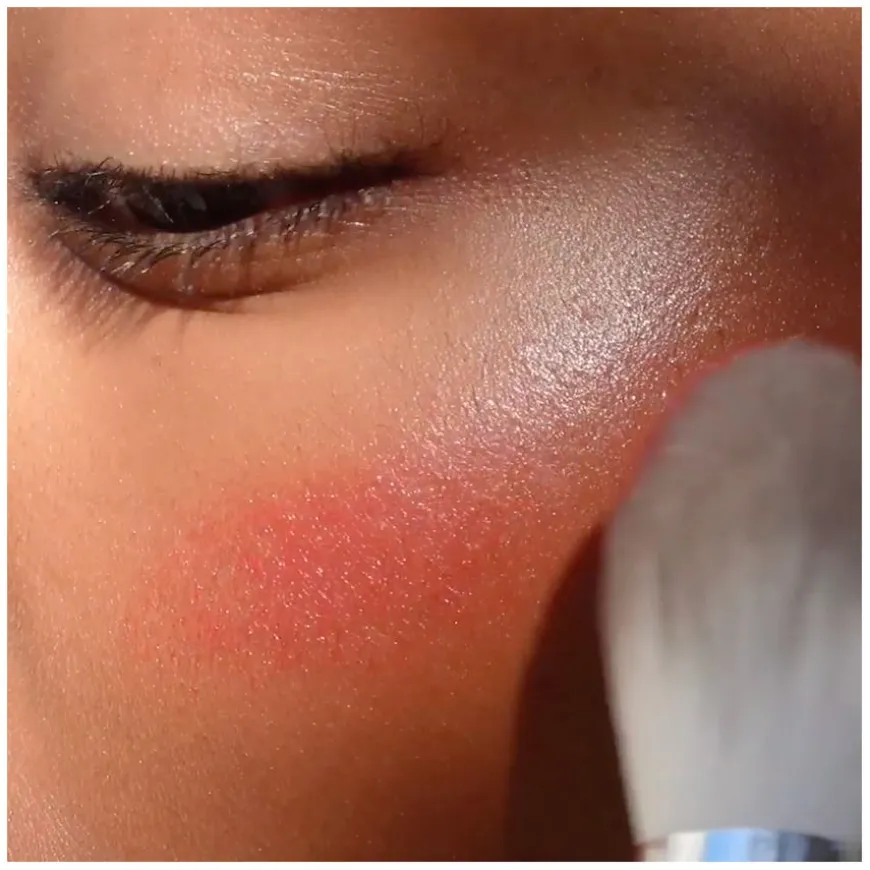 - Påfør produktet med fingrene eller en børste på kinnbeina i sirkulære bevegelser.