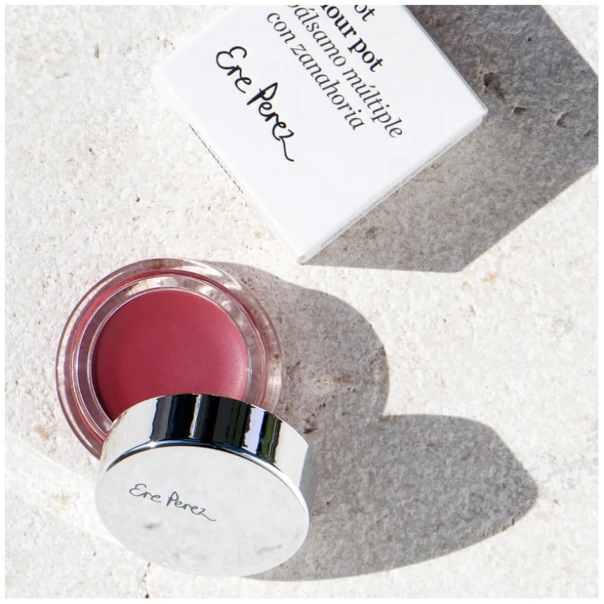 Carrot Colour Pots er en pigmentert kombinasjon av blush og leppestift som inneholder fuktighetsgivende gulrot. Den veganske formelen gir en behagelig myk krem som på huden blir lett matt og gir langvarig farge til både kinn og lepper. Denne dynamiske lille krukken inneholder sunne plantebaserte ingredienser som antioksidantrike gulrøtter, som holder huden myk og hydrert. Gulrot er en naturlig pigment. Ere Perez er forpliktet til å utnytte naturen for å gi deg produkter som ser bra ut, føles fantastiske og har mindre innvirkning på vår vakre planet. Balm-formelen smelter sømløst inn i huden for en duggfrisk, naturlig finish som fremhever din naturlige skjønnhet. Den er allsidig som både blush og leppebalm. Disse krukkene har speillokk for rask oppfriskning når du er på farten, så du kan legge til en frisk farge når som helst, hvor som helst. Kommer i en rekke nyanser.