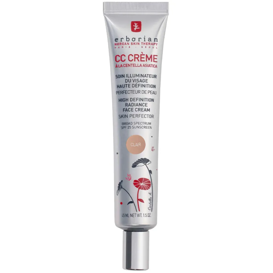 Erborian CC Creme er en cc-krem med en allsidig formel: denne «High Definition»-illuminatoren med sin ekstremt fine tekstur, inneholder innkapslede pigmenter som forbedrer hudens utseende samtidig som den beriker og forbedrer tekstur og kvalitet. Dette gjør CC Cream til den ideelle kombinasjonen av hudpleie og makeup. Takket være sin UV-beskyttelse med SPF 25, bidrar CC Cream til å forebygge solskader. Ved første øyekast virker kremen hvit, men ved påføring tilpasser den seg presist for å matche din hudtone. Den etterlater en naturlig, jevnere hudtone, samtidig som huden blir strålende og myk. I tillegg reduseres synligheten av urenheter.