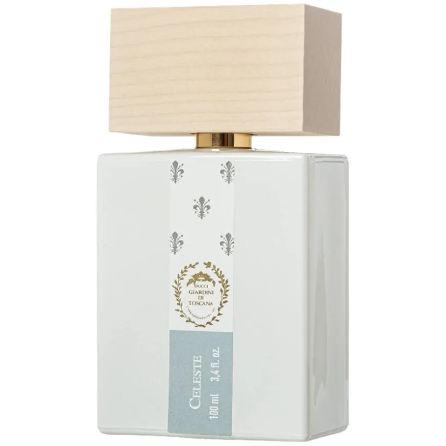 Celeste Eau de Parfum fra Giardini di Toscana fanger essensen av en lys morgen etter en nattlig storm, der frisk luft og en klar himmel skaper en følelse av renhet og ro. Denne unisexduften kombinerer delikate sitrusnoter med florale hint av fiolett iris, noe som resulterer i en krystallklar og ren atmosfære.