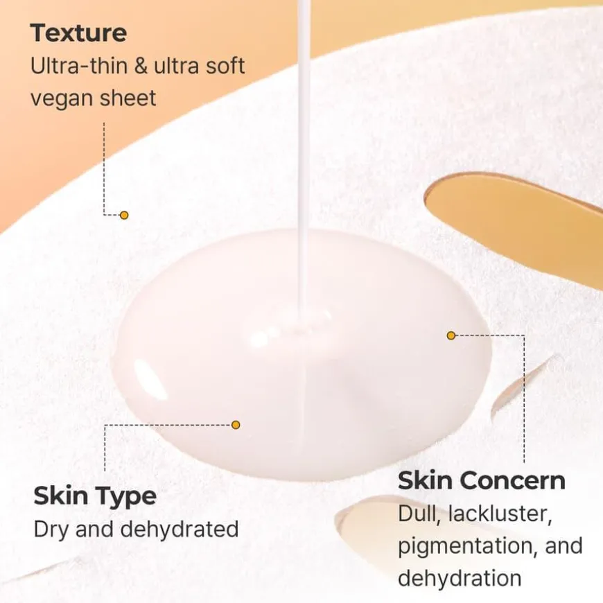 Forsterket med avansert liposomteknologi, trenger de aktive ingrediensene dypt inn i huden for maksimal effekt. Kliniske tester har vist at masken reduserer pigmentering, mørke flekker, rødhet og ujevn hudtone. Den veganske sheetmasken er laget av ultramykt mikrofiber som tilpasser seg huden perfekt, og sikrer optimalt opptak av de høyeffektive ingrediensene for bedre resultater.