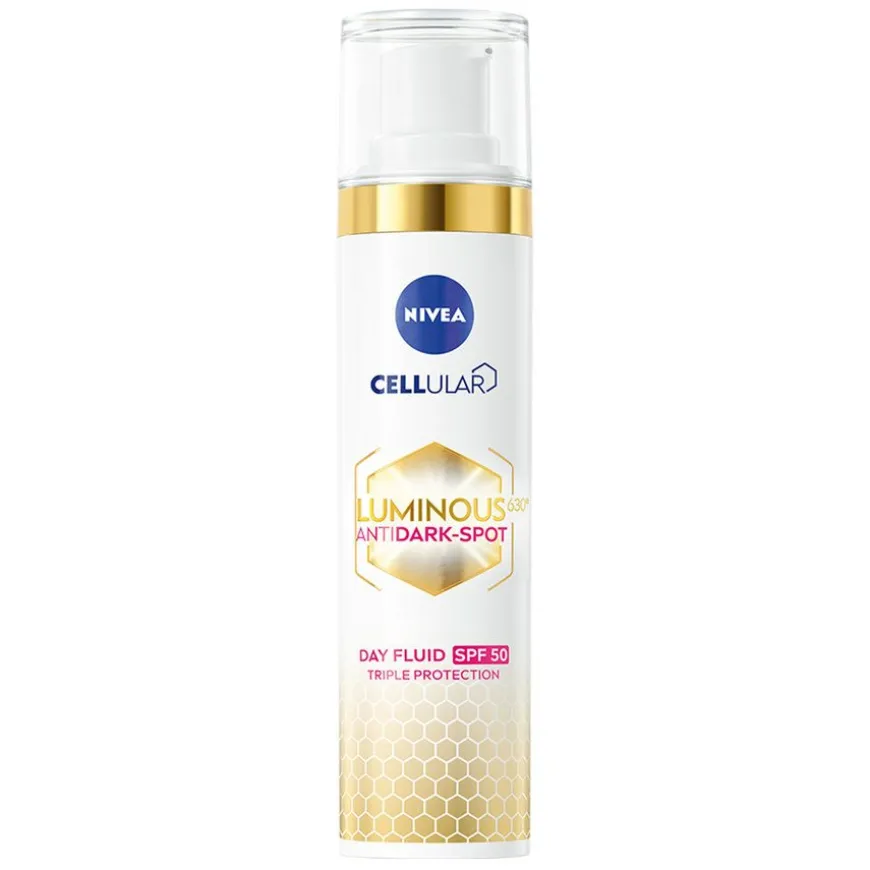 Cellular Luminous630 Anti Dark Spot Day Fluid inneholder den pigmentflekk-dempende, ingrediensen LUMINOUS630, som kombineres med en ekstra beskyttende, men samtidig lett formel beriket med celleaktiverende hyaluronsyre*, vitamin E og UVA/UVB-filter (SPF 50). Det tok forskerne hos NIVEA ti år med intensiv forskning og screening av 50 000 ingredienser for å finne LUMINOUS630, som virker effektivt på cellenivå. Dermatologisk testet. Skånsom mot huden og egnet til alle hudtyper, også sensitiv hud.