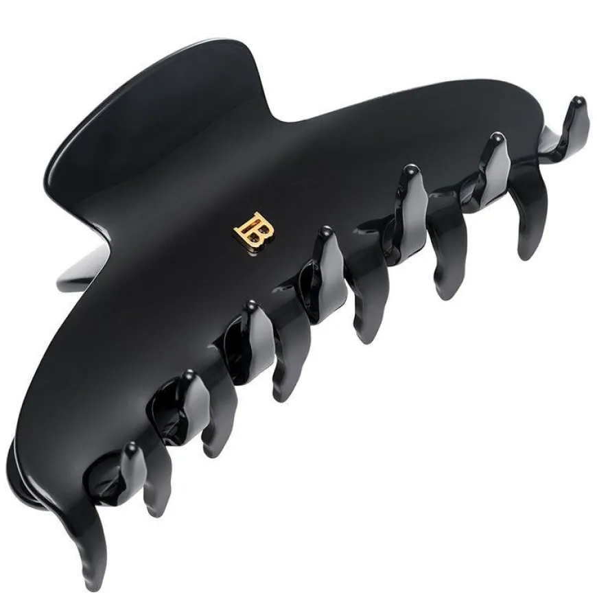 Cellulose Acetate Pince À Cheveux Large Hairclip er enstor håndlaget klo-klips laget av slitesterk celluloseacetat designet med Balmains signatur 18K gullbelagte «B» -logo. Det ekstremt sterke, men fleksible materialet er allergivennlig og skånsomt for hår og hodebunn. Den store klipsen er spesielt designet for tykt og langt hår og fungerer som et ekte statementstykke når det klippes inn i håret.