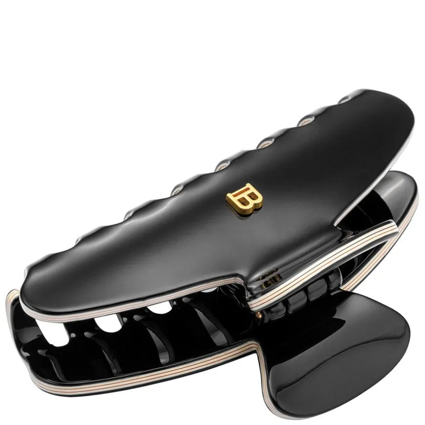 Cellulose Acetate Pince À Cheveux Medium Hairclip er en mellomstor håndlaget klo-klips laget av slitesterk celluloseacetat designet med Balmains signatur 18K gullbelagte «B» -logo. Det ekstremt sterke, men fleksible materialet er allergivennlig og skånsomt for hår og hodebunn. Middels størrelse er svært allsidig for et bredt spekter av frisyrer og perfekt for en rotete bolle, fransk vri eller halv updo.