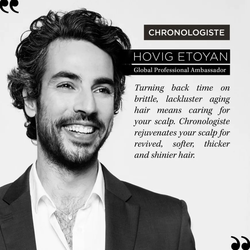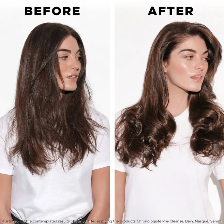 Chronologiste er spesielt utviklet for de som ønsker den ultimate luksusen for håret, og er en mirakuløs eliksir som renser og gir nytt liv til håret. Inneholder perler av mimetisk kaviar som vi er spesielt kjent for. Perlene smeltes sammen rett før påføring, noe som gir en lekker og delikat duftende påføring. Hodebunnen lindres og regenereres, håret blir reparert og får ny spenst og styrke, hårstråene blir silkemyke og voluminøse.