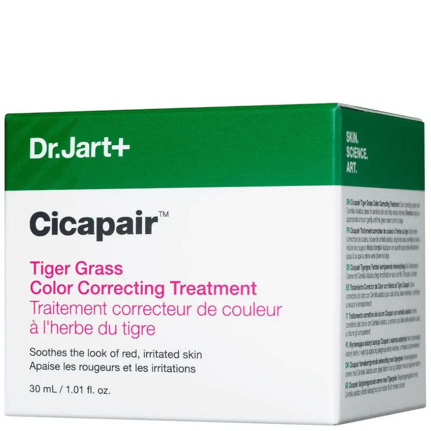 Cicapair Tiger Grass Color Correcting Treatment er enalt-i-ett-behandling som inkluderer en fargeskiftende kapsel for å dekke flekker og nøytralisere rødhet, og gjenoppretter utmattet hud for et levende utseende. Formelen har Tiger Grass (Centella Asiatica) for å hjelpe til med å gjenopprette sensitiv hud, irritasjon eller ubehag mens du hydrerer. Grønn-til-beige fargeskiftende formel korrigerer rødhet for å presentere sunn hud.