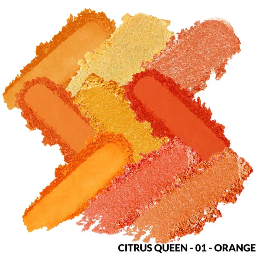 Citrus Queen Collection Orange er et øyenskyggepalett med ni skinnende, glitrende og matte nyanser i en rekke oransje toner. Enten du vil legge til et hint av farge eller skape et dristig, levende utseende, har denne paletten deg dekket.