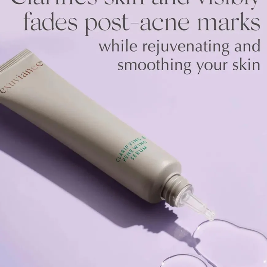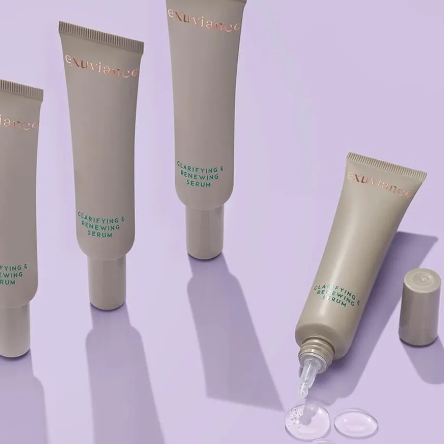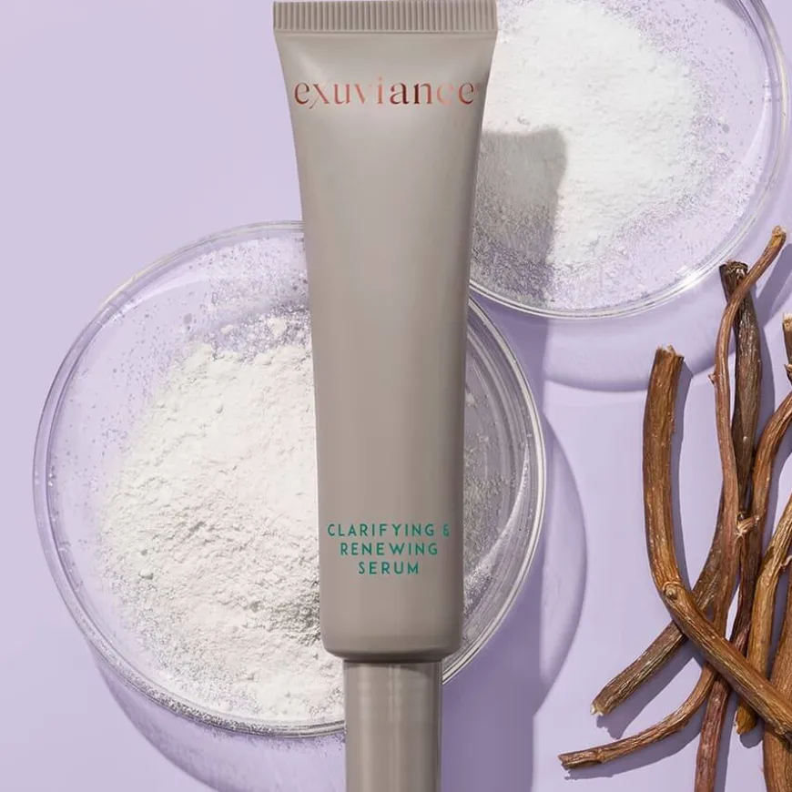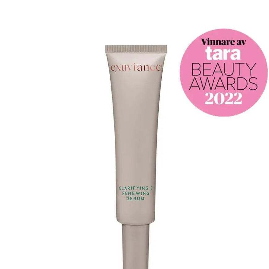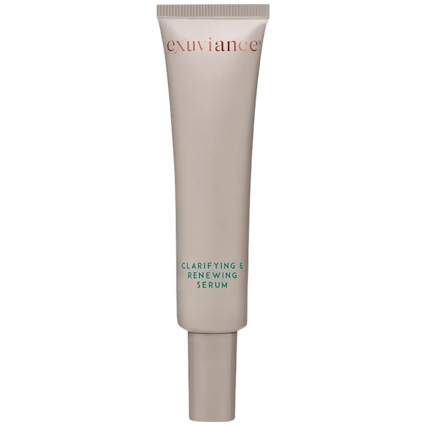 Clarifying & Renewing Serum er et lett, men kraftfullt serum spesielt utviklet for deg som ønsker en klarere hud med jevnere tone og tekstur. Serumet kombinerer niacinamid og Exuviance sin patenterte NeoGlukosamin®-teknologi, som virker effektivt for å redusere pigmentering, aknearr og synligheten av forstørrede porer. NeoGlukosamin eksfolierer skånsomt og fremmer cellefornyelsen, noe som bidrar til å motvirke tilstoppede porer og akne, samtidig som hudens spenst, volum og glød forbedres. Resultatet er en mer balansert og strålende hud, med redusert forekomst av linjer, ujevnheter og pigmentflekker. Perfekt for deg med akneutsatt hud, fet hud, forstørrede porer eller post-inflammatorisk hyperpigmentering, samt for deg som ønsker å forebygge aldringstegn.