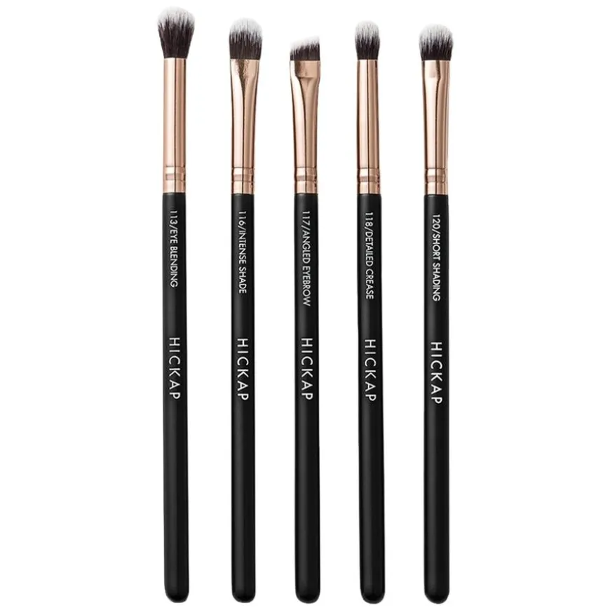 Classic Eye Set består av fem børster fra Classic Collection. Det syntetiske håret av høy kvalitet er utformet for å gi en ultramyk påføring og for å fange opp riktig mengde produkt. Det mest følsomme området i ansiktet er øyeområdet. Hver og en av våre børster er derfor laget av supermyke strå som ikke irriterer huden. Med Hickaps Classic Eye Set har du verktøyene du trenger for å påføre øyesminken som en proff. Settet kan brukes til alt fra å påføre basisskygge til concealer. Alle børster er 100 % veganske. Det er ikke brukt dyrehår! Vedlikehold: Rengjør børstene en gang i uken med børsterens.