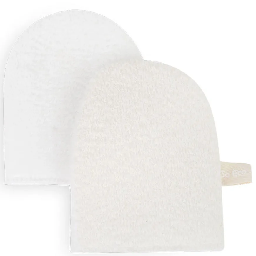 Cleansing Face Mitts er to gjenbrukbare, tosidige ansiktsvotter som forbedrer hudpleierutinen din. Eliminer tørr hud og avslører umiddelbart en sunn glødende hud gjennom skånsom peeling og rensing. Fjerner giftstoffer og urenheter, hjelper til med å forynge og friske opp huden.