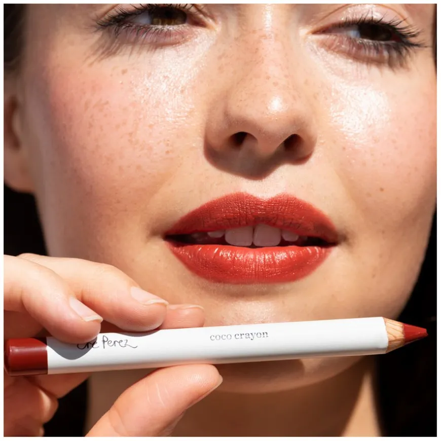 Coco Crayon er en dekkende og lettglidende leppestiftblyant laget av naturlig kosmetikk, med en matt finish. De fuktighetsgivende og nærende ingrediensene holder leppene saftig fuktige hele dagen! Føles like lett på leppene som en leppepomade. Kokosolje beskytter og reparerer huden, mens baobabfrøolje inneholder antioksidanter, A-, B- og C-vitaminer, samt omega-3, -6 og -9 fettsyrer. Den smale og praktiske blyanten kan også brukes som lipliner og til og med som blush! Coco Crayon kommer også i en rekke nyanser.