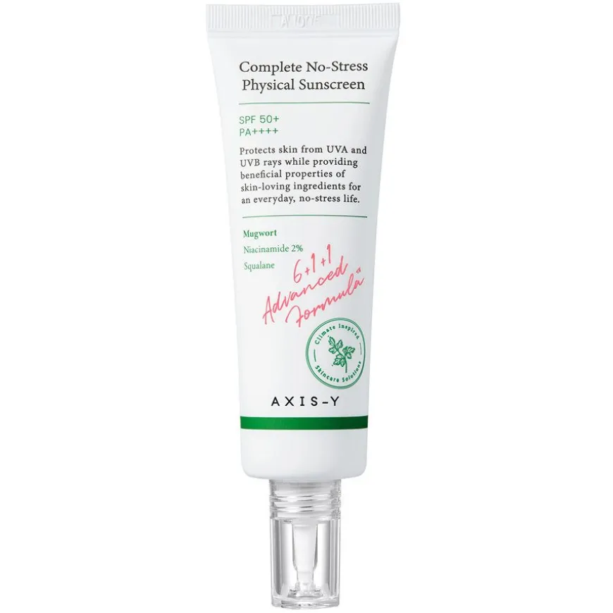 Complete No-Stress Physical Sunscreen V3 er en solkrem basert på burot med 2% niacinamid og skvalan som beskytter huden mot UVA- og UVB-skader samtidig som den gir helende egenskaper fra hudvennlige ingredienser. Formelen har nylig blitt oppgradert. Teksturen er forbedret til en essens-gel finish, med hyaluronsyre tilsatt for ekstra fuktighet, og de urteaktige duftene er fjernet.