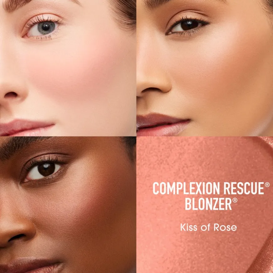 Complexion Rescue Blonzer er en innovativ ren blush + bronzer-hybrid som kombinerer rosefarget blush med solkysset glød fra en bronzer— i bare ett trinn. Kremet farge, drømmende glød. Fuktigheten du elsker i din Complexion Rescue Tinted Moisturizer, nå i en glødende rouge.