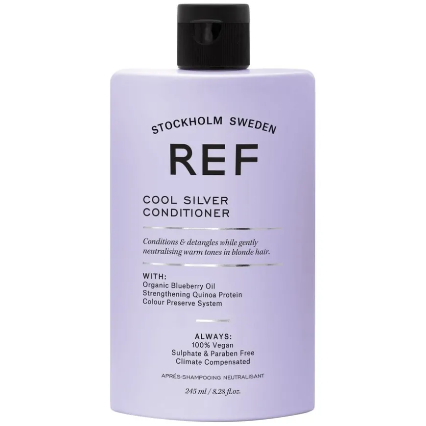 Balsam med en rik kombinasjon av blå og fiolette pigmenter som toner ned og ytterligere reduserer uønskede gule toner i håret. Med økologisk blåbærolje, linolje og blå og fiolette pigmenter. Cool Silver-serien er utviklet for naturlige blondiner, bleket og naturlig hvitt hår for å eliminere uønskede gule toner.