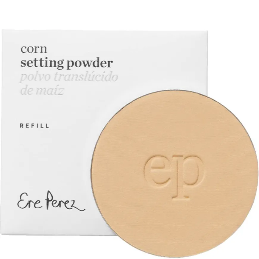 Corn Setting Powder er et fikseringspudder i refill format som gir en usynlig matt finish på huden, forbedrer sminkens holdbarhet og reduserer fet hud. Den nye og forbedrede glutenfrie formelen er skånsom mot alle hudtyper og passer også for sensitiv hud. Det ultrafine pudderet er lett og gjennomsiktig på huden. Reduserer glans og jevner ut rødhet. Kan også brukes som en base for øyenskygge. Corn Setting Powder setter foundation og concealer, og kan brukes til å friske opp sminken.