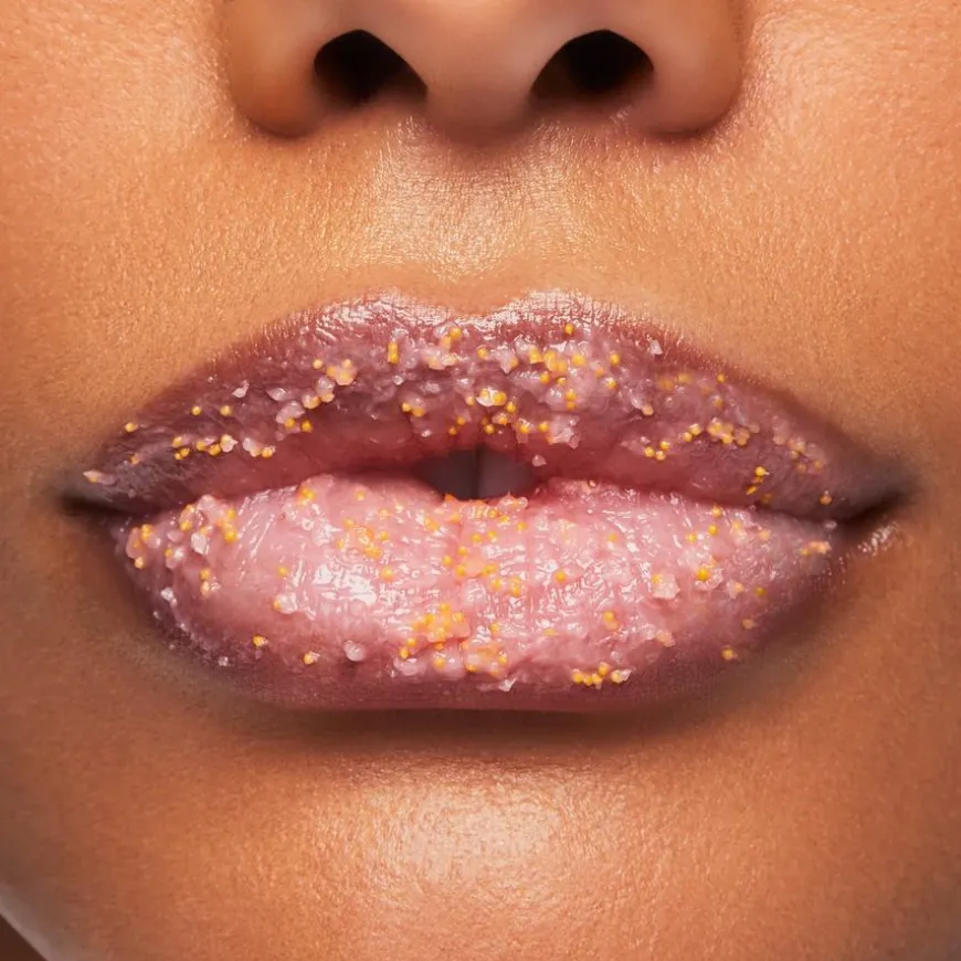 - Begynn med å påføre leppeskrubben på leppene med sirkelbevegelser for å fjerne eventuelle tørre hudflekker.