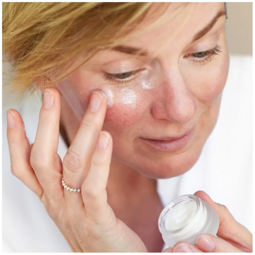 - Trykk forsiktig kremen rundt øynene og leppene med fingertuppene, og masser den mykt inn i huden.