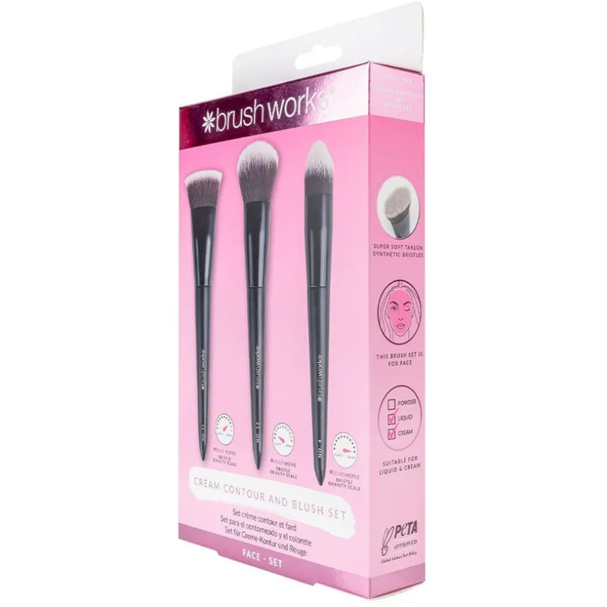 Hev din sminkerutine med Brushworks Cream Contour and Blush Set, et sett med tre essensielle børster designet for å forme og definere dine trekk uten anstrengelse. Dette settet inkluderer No. 11 Flat Top Contour Brush, No. 12 Blush Brush og No. 4 Tapered Buffing Brush, hver kost er nøye utformet for å imøtekomme dine behov for konturering og påføring av blush. Med supermyke taklon syntetiske børstehår sikrer disse børstene at produktene dine glir på jevnt og glatt, samtidig som de er ekstremt skånsomme mot huden.