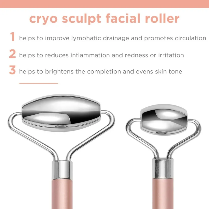 Cryo Sculpt Facial Roller er en hygienisk rulle av rustfritt stål som hjelper til med å roe betennelser og stramme opp porene for frisk, strålende hud. Si farvel til hoven hud. Start dagen med å rulle søvnen ut av ansiktet og avslutt den med en avslappende ansiktsmassasje takket være den kryoskulpturerte ansiktsrullen. Dette hjelper til med å løsne spenninger, stimulere ansiktet og fjerne funksjoner for en forbedret form. Ideell for alle hudtyper, men kan være en flott løsning for fine linjer, akne og sensitiv hud.