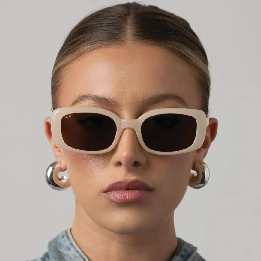 Daisy er et par smale solbriller i ivory fra Otra Eyewear. Solbrillene gir en elegant og sofistikert look med sine frostede elfenbensfargede rammer og brune glass. Daisy-modellen gir utmerket UV-beskyttelse og passer til alle ansiktsformer. Disse solbrillene er lette og komfortable, perfekte for daglig bruk. Uansett om du er på stranden eller i byen, er Daisy solbrillene det ideelle tilbehøret for å beskytte øynene dine med stil.