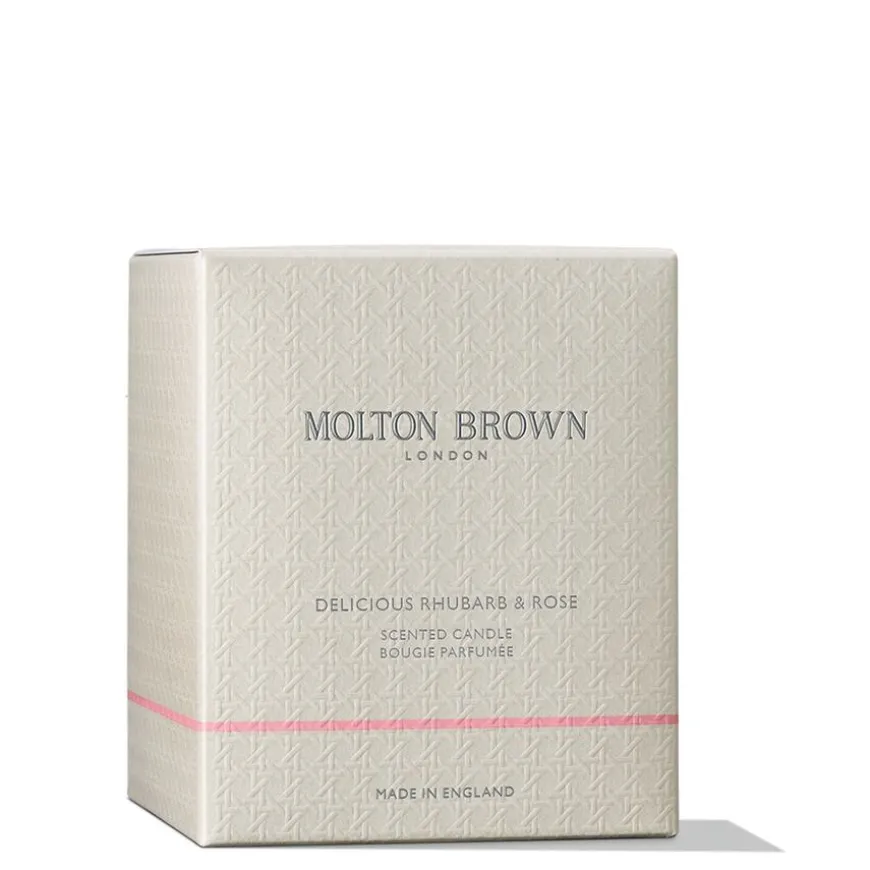 Fyll ditt hjem med aromaene og duftene du elsker. Molton Brown Delicious Rhubarb & Rose Signature Candle er den ultimate innredningsdetaljen, som lokker sansene dine med en herlig kombinasjon av fløyelsmyke roser, syrlig rabarbra og kremet vanilje. Laget av bærekraftig mineralvoks som gir den fineste flammen. Forsterk duftopplevelsen i hjemmet ditt ytterligere ved å kombinere med Molton Browns matchende duftpinner.