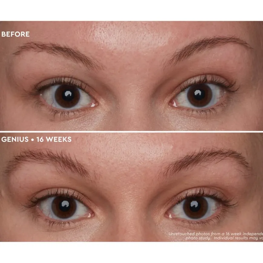 Brow Genius® blander seks aktive ingredienser til en strålende formel med mange fordeler som fungerer nå og i fremtiden for å skape et utseende du vil elske. Tenk deg mykere, mer håndterbare, fyldigere øyenbryn som føles og oppfører seg som øyenbrynene du alltid har ønsket deg. Fra peptider, panthenol og koreansk ginseng til biotin og ricinusolje – denne kraftige kombinasjonen av ingredienser er designet for å nære øyenbrynene, øke håndterbarheten og gi dem en total makeover.