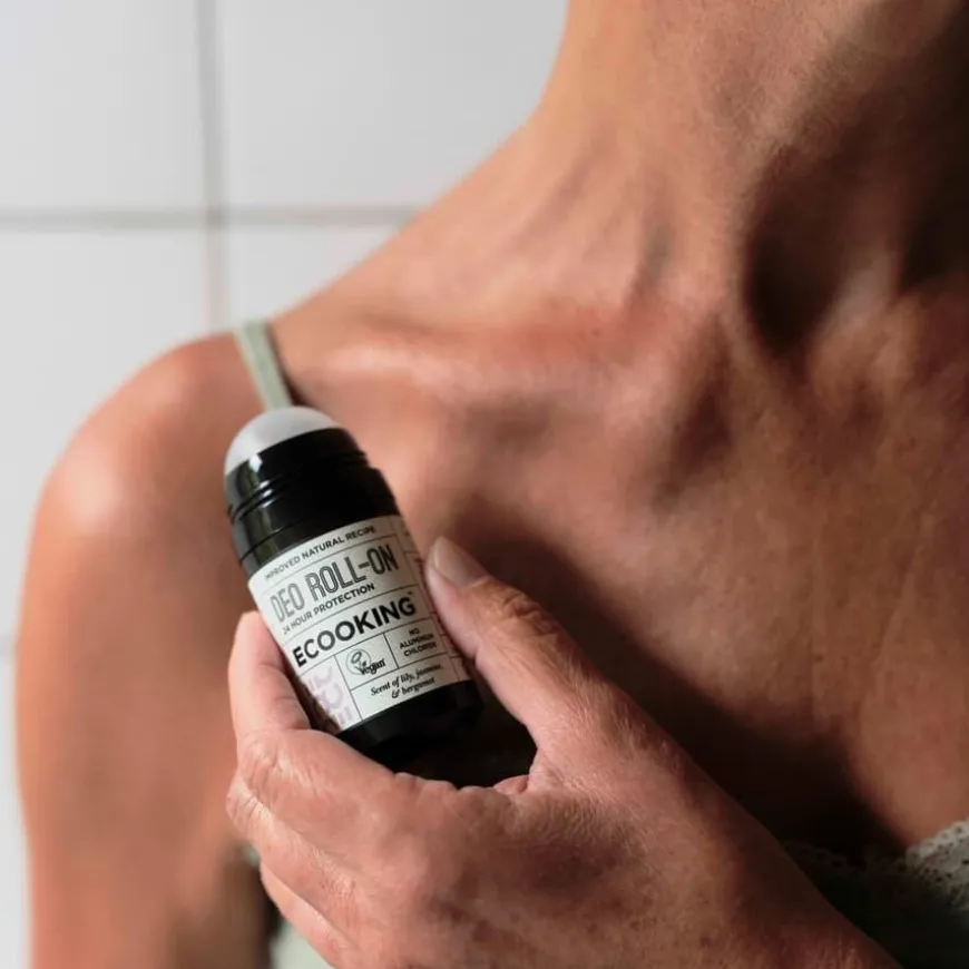 ECOOKING Deo Roll-On gir 24-timers friskhet med en formel som er 99 % naturlig og fri for aluminium. Den har en herlig duft av liljekonvall, jasmin, bergamottappelsin og et hint av rose, som gjør at du føler deg velduftende hele dagen. Deodoranten inneholder aktive ingredienser som trietylsitrat, sink PCA og leuconostoc, som hemmer svette og bakterievekst, samtidig som de fremmer en sunn hudbarriere og mikrobiom. Resultatet er en komfortabel følelse og langvarig friskhet.