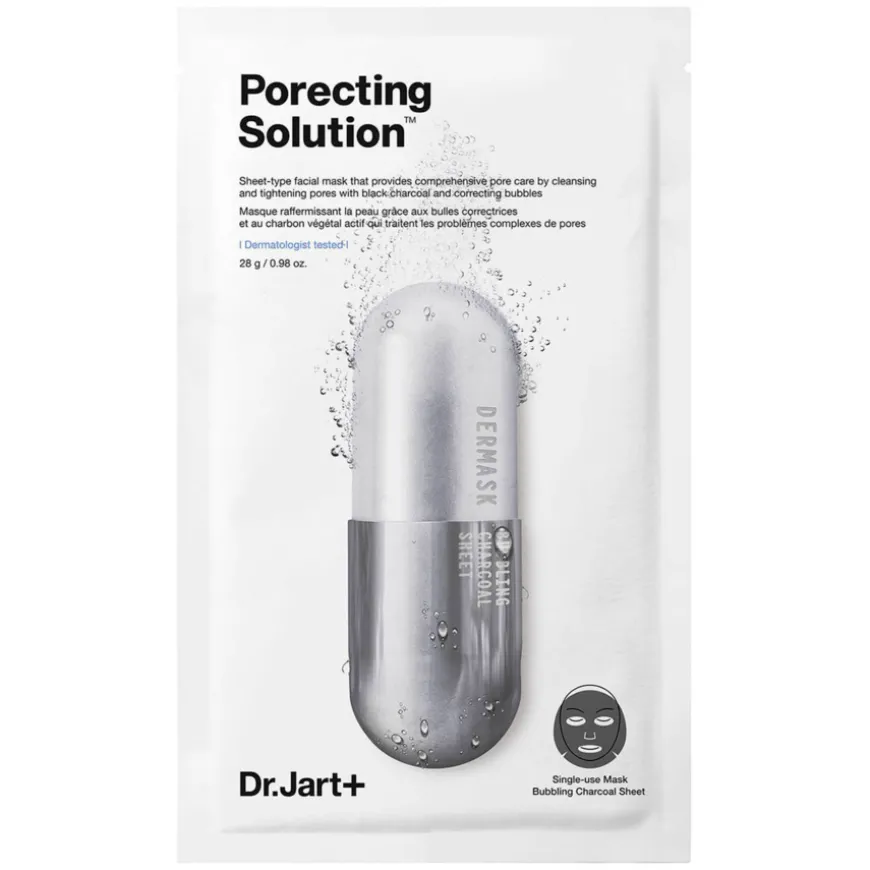 Dermask Porecting Solution er en skyllefri, boblende kullmaske som umiddelbart reduserer olje, tilfører fuktighet og strammer opp porene. Denne skyllefrie, boblende kullmasken med Phlorogine og Betaine reduserer umiddelbart olje og tilfører fuktighet for å balansere huden samtidig som den strammer opp porene. Den innovative svarte kullarkmasken bobler og bruser, og gir en prikkende følelse på huden mens de aktive ingrediensene begynner å virke. Etter 15 minutter ser huden ren, frisk og porefri ut.