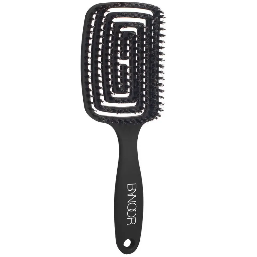 ByNoor Detangling Brush er en fleksibel børste i oval form. Kombinasjonen myk bust og myke pigger løsner floker på en skånsom måte. Børsten er bevegelig og svært behagelig for hodebunnen. Til bruk i tørt og vått/håndkletørt hår. Utformet med luftehull for mer effektiv føning. Kommer i en pose for oppbevaring og reise.