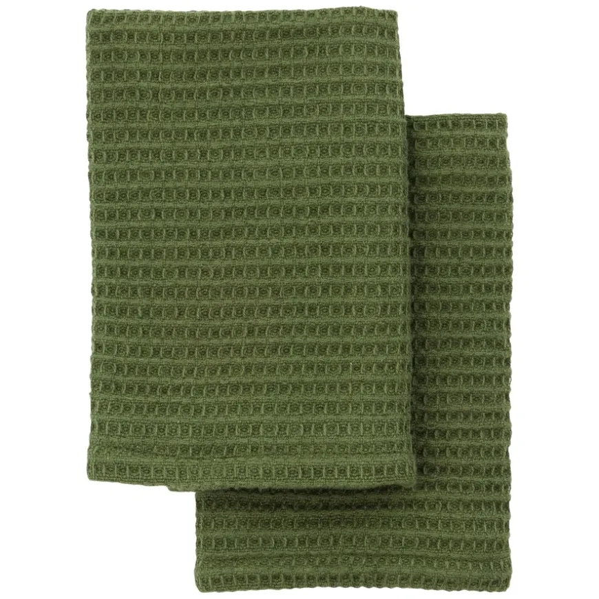Dish Cloth Green gir kjøkkenet ditt et naturlig og stilfullt preg med sine myke, Oeko-Tex-sertifiserte bomullskluter. Den vaffelmønstrede teksturen gir en effektiv skrubbeoverflate og god absorberingsevne, noe som gjør klutene ideelle for daglig rengjøring. Den jordaktige grønne fargen tilfører en rolig estetikk som passer til ulike kjøkkenstiler. Et praktisk og bærekraftig valg for kjøkkenet ditt.