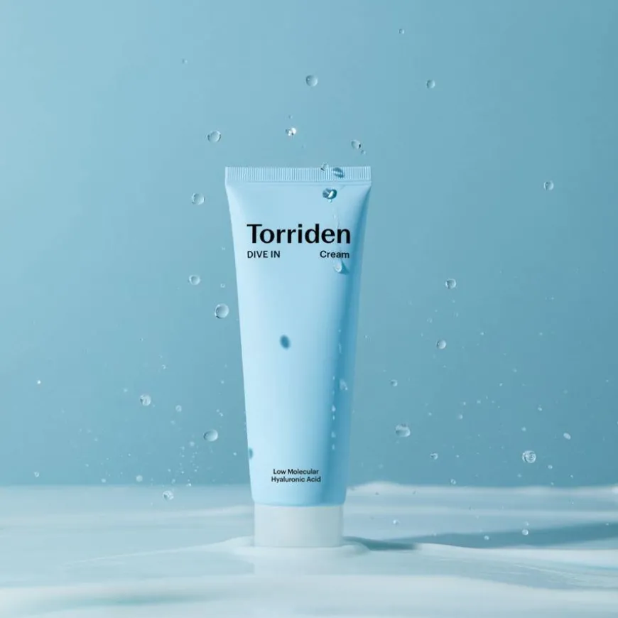 TORRIDEN DIVE-IN Cream er en fuktighetskrem fylt med 5 typer lavmolekylær hyaluronsyre, peptider, ceramider NP og betaglukan for å gi huden en dyp fuktighet og redusere fremkomst av fine linjer og rynker.