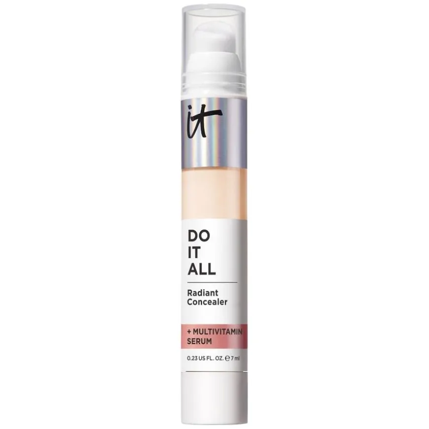 Do It All Plumping Radiant Concealer er en strålende concealer med medium dekning og en pleiende formel som fungerer som et 4-i-1 serum. Den skjuler ujevnheter, fyller ut fine linjer og gir huden glød uten å legge seg i linjene. Inneholder et multivitaminserum med hyaluronsyre, niacinamid, vitamin B5 og vitamin E som gir fuktighet i opptil 24 timer, forbedrer hudens tekstur og utstråling. Concealeren har en lett konsistens og en myk applikator som gjør det enkelt å kontrollere dekningen. Passer alle hudtyper, inkludert tørr og kombinert hud. Vegansk formel og dermatologisk testet.
