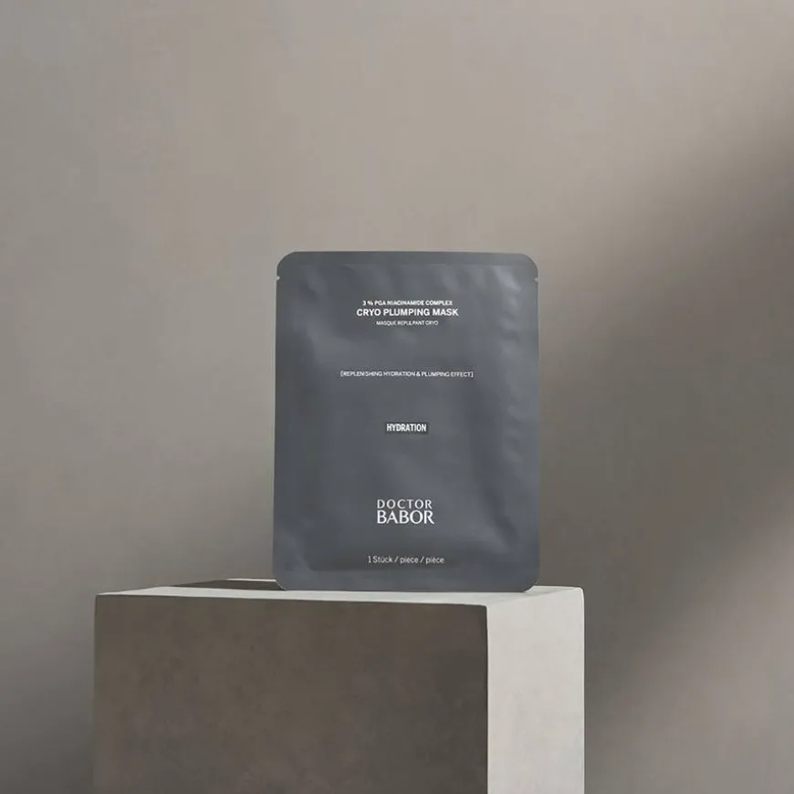 Hydration Cryo Plumping Mask er en nedkjølende fuktighetsmasken består av et kraftig kompleks av multimolekylær hyaluronsyre, PGA og niacinamider, for å øke hudens fuktighet og minske utseendet på porene og ubalansert hudtone. Fordelingen av fuktighet er optimalisert, og transepidermalt vanntap minimeres. Masken er laget av naturlig biocellulose som kjøler ned huden og hydrerer samtidig. For alle aldre og hudtyper.