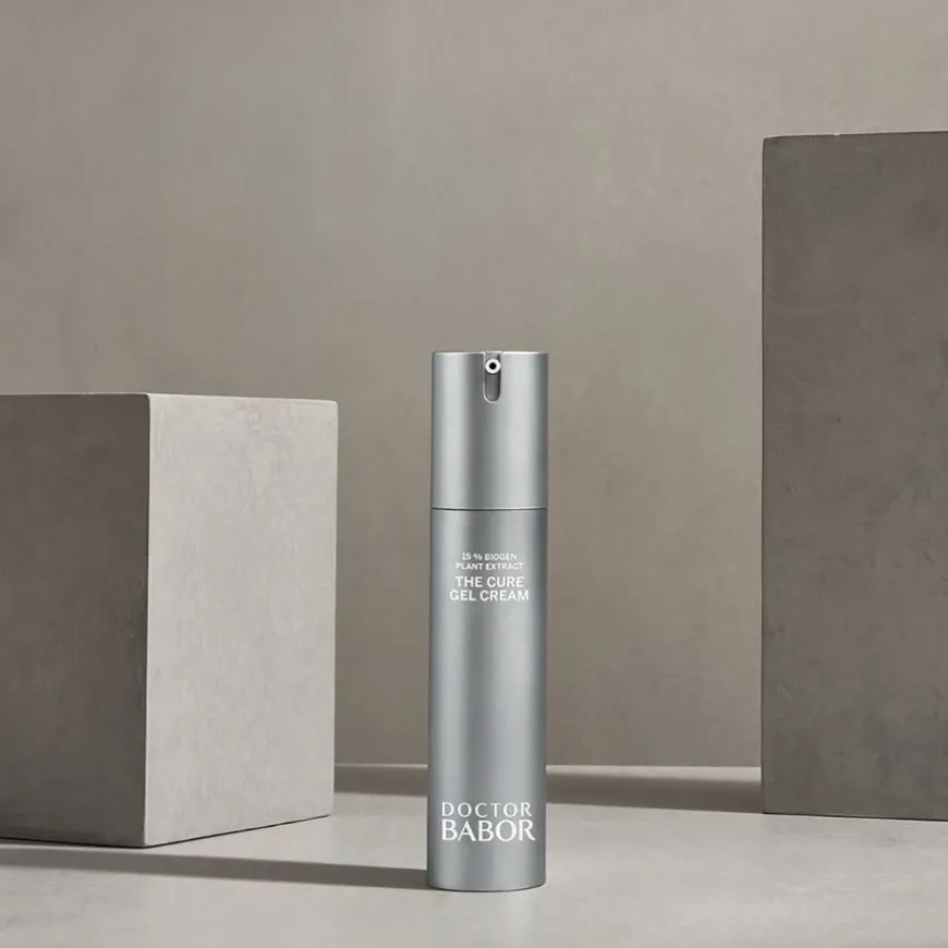 Regeneration The Cure Gel Cream er en vegansk oppgradert Ultimate Repair Cream, kjent som «mirakelkremen» i Babor. The Cure Cream inneholder 3 % fermenterte planter, som gir huden en antioksidant-boost og samtidig fremmer hudens fuktighet, 4,5 % pantenol som forhindrer vanntap og er fuktighetsgivende samt 15 % biogen planteekstrakt.