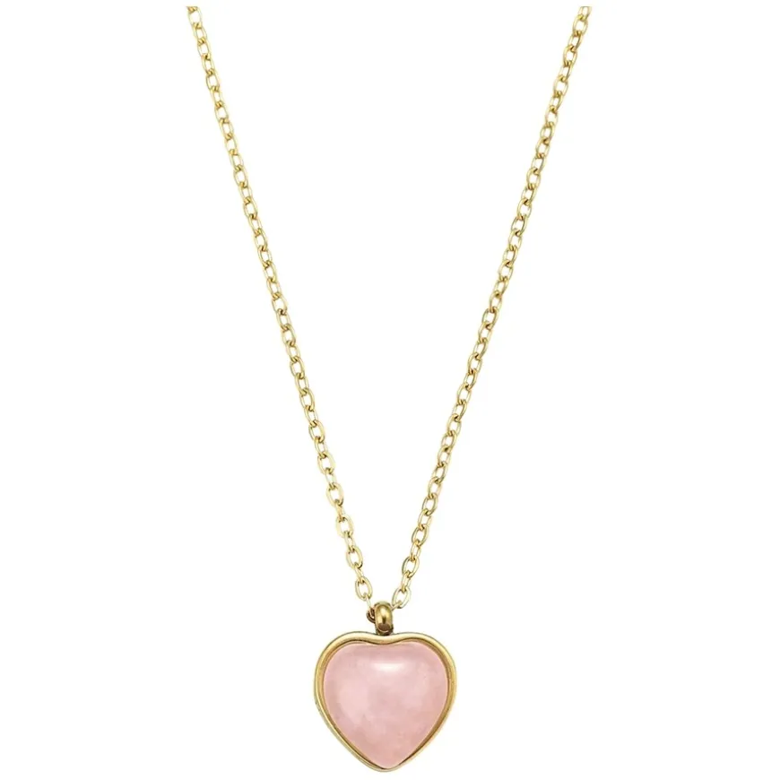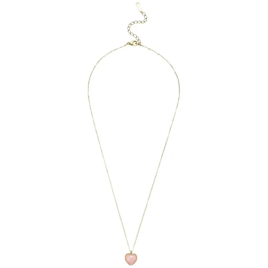 Dorotea Gemstone Heart Necklace Rose Quartz er et iøynefallende halskjede som kombinerer glamour og styrke. Det vakre hjertet prydes av rosenkvarts, kjent for sin myke rosa nyanse og beroligende energi. Laget av 100 % rustfritt stål med 18k gullbelegg, er dette smykket både slitesterkt og vannbestandig, perfekt for daglig bruk. Et tidløst smykke som tilfører en elegant og personlig touch til enhver look. Laget av Happy People og fri for nikkel, kadmium og bly.