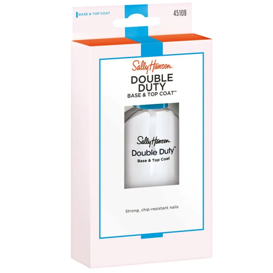 Sally Hansen Double Duty Base & Top Coat er en 2-in-1 base og top coat som beskytter og styrker neglene for sterkere og en feilfri manikyr som varer. Panthenol formula jevner negloverflaten og holder på fargen. Nylon, og Pro-Vitamin B5 beskytter neglene og etterlater en hard finsih.