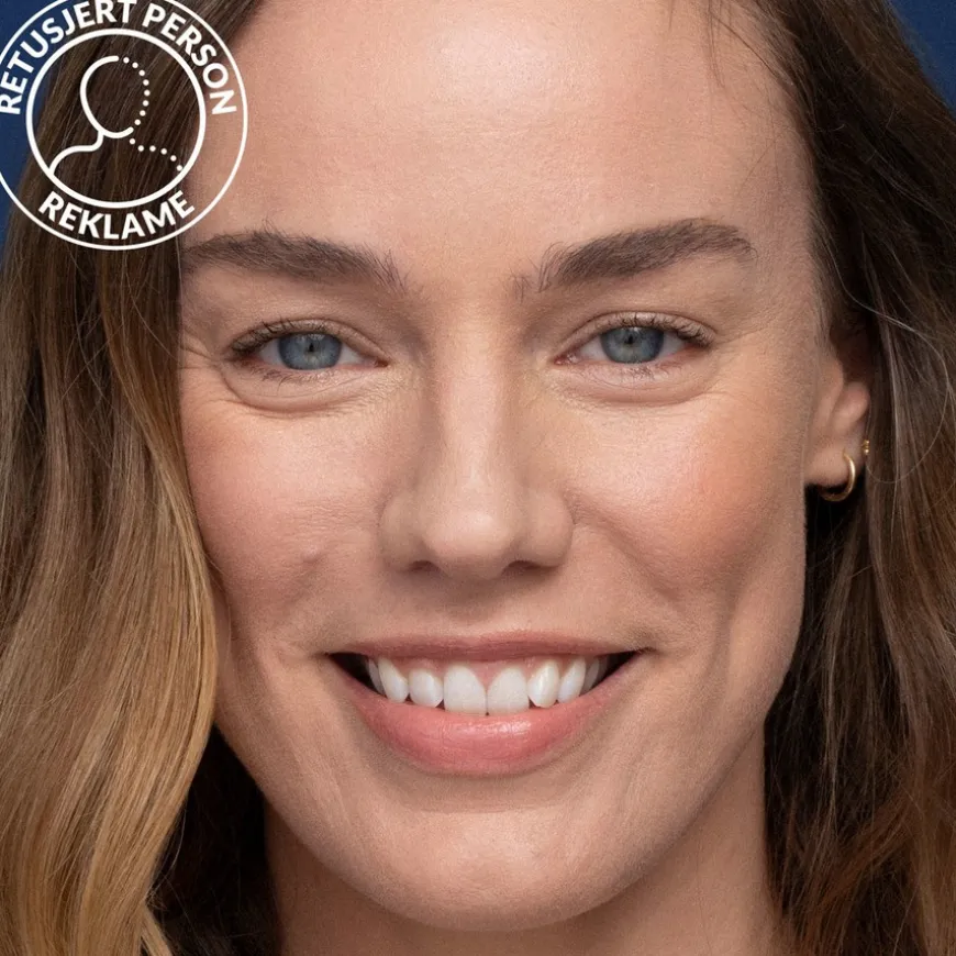- Start fra midten av ansiktet og arbeid deg utover.