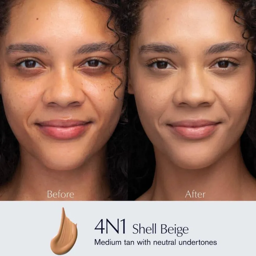 - Estée Lauders Dual Fusion-prosess forener mykgjørende stoffer med pigmenter for å skape denne effektive, mikrofine pudderfoundation med en fløyelsmyk tekstur som føles vektløs og ultrakomfortabel på huden. Den gir allsidig dekning samtidig som den er vannfast, svettebestandig og fuktresistent. Den leveres med en dobbeltsidig applikator som gjør det mulig å bygge opp dekningen etter behov med denne medium til heldekkende pudderfoundation.