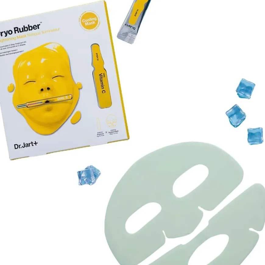 STEP 01 Dr.Jart+ Cryo Rubber Brightening Ampoule WATERAQUAEAU, DIPROPYLENEGLYCOL, CAPRYLIC/CAPRIC TRIGLYCERIDE, GLYCERIN, BUTYLENE GLYCOL, NIACINAMIDE,1,2-HEXANEDIOL, PEG-240/HDI COPOLYMER BIS-DECYLTETRADECETH-20 ETHER, DIMETHICONE,ISOHEXADECANE, GLYCERETH-26, TREHALOSE, 3-O-ETHYL ASCORBIC ACID, ETHYLHEXYLGLYCERIN,BETAINE, CURCUMA LONGA (TURMERIC) ROOT EXTRACT, MELIA AZADIRACHTA FLOWER EXTRACT,MELIA AZADIRACHTA LEAF EXTRACT, CORALLINA OFFICINALIS EXTRACT, MELIA AZADIRACHTA BARKEXTRACT, OCIMUM SANCTUM LEAF EXTRACT, MORINGA OLEIFERA SEED OIL, MANGIFERA INDICA(MANGO) SEED BUTTER, MACADAMIA TERNIFOLIA SEED OIL, ALLIUM CEPA (ONION) BULB EXTRACT,UNDARIA PINNATIFIDA EXTRACT, CYNARA SCOLYMUS (ARTICHOKE) LEAF EXTRACT, MUSASAPIENTUM (BANANA) FRUIT EXTRACT, ASPARAGUS OFFICINALIS EXTRACT, BRASSICA OLERACEACAPITATA (CABBAGE) LEAF EXTRACT, GLYCERYL STEARATE, PEG-100 STEARATE, HYDROXYETHYLACRYLATE/SODIUM ACRYLOYLDIMETHYL TAURATE COPOLYMER, GLYCERYL ACRYLATE/ACRYLICACID COPOLYMER, POLYSORBATE 60, SORBITAN ISOSTEARATE, POTASSIUM LAURATE, CETEARYLALCOHOL, SORBITAN SESQUIOLEATE, DISODIUM EDTA, TOCOPHEROL STEP 02 Dr.Jart+ Cryo Rubber Brightening Mask WATERAQUAEAU, METHYLPROPANEDIOL,CHONDRUS CRISPUS EXTRACT, GLYCERIN, CERATONIA SILIQUA (CAROB) GUM, BUTYLENE GLYCOL,CAPRYLYL GLYCOL, ALLANTOIN, DIPOTASSIUM GLYCYRRHIZATE, ETHYLHEXYLGLYCERIN, COPTISJAPONICA ROOT EXTRACT, HIPPOPHAE RHAMNOIDES FRUIT EXTRACT, XYLITOL, GLUCOSE,XANTHAN GUM, POTASSIUM CHLORIDE, DIPROPYLENE GLYCOL, ALGIN, SUCROSE, PANTHENOL,POLYGLYCERYL-10 LAURATE, CALCIUM CHLORIDE, CITRIC ACID, XYLITYLGLUCOSIDE,ANHYDROXYLITOL, HYDROGEN DIMETHICONE, KAOLIN, DIATOMACEOUS EARTHSOLUMDIATOMEAETERRE DE DIATOMÉES, DISODIUM EDTA, SODIUM CITRATE, HYDROXYACETOPHENONE,TITANIUM DIOXIDE (CI 77891)