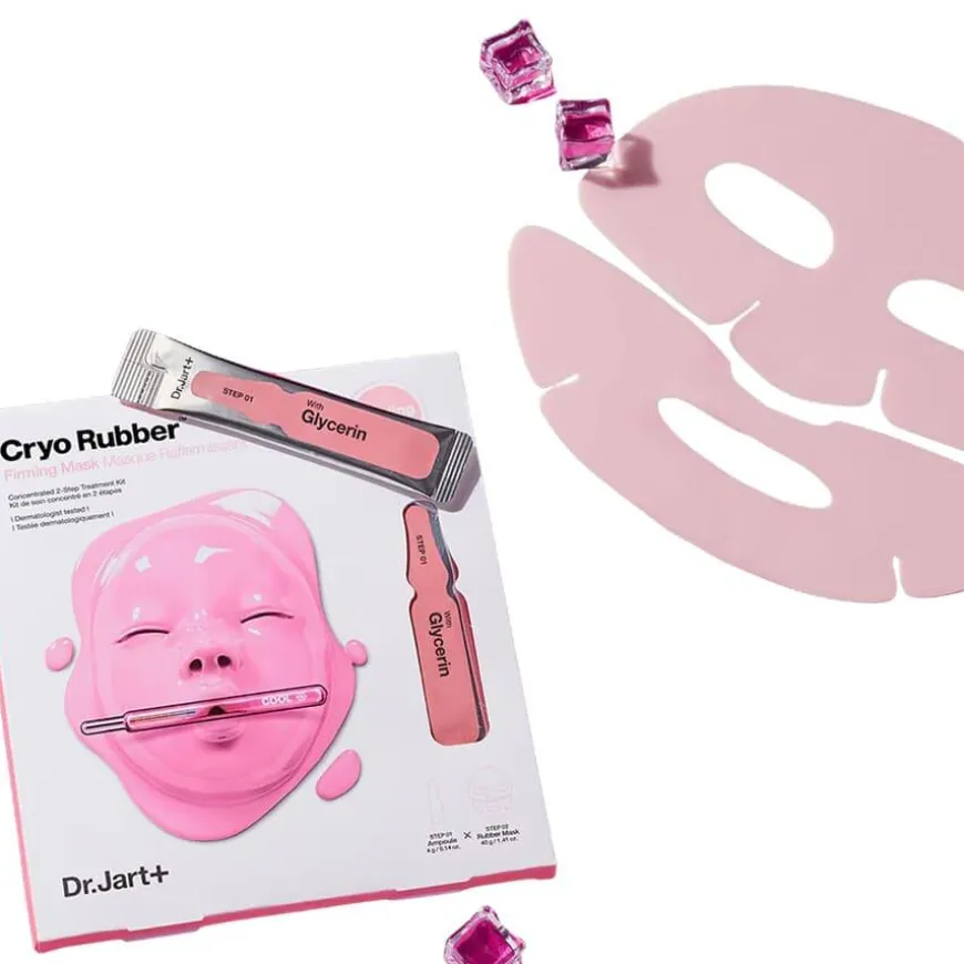 STEP 01 Dr.Jart+ Cryo Rubber Firming Ampoule WATERAQUAEAU, DIPROPYLENEGLYCOL, CAPRYLIC/CAPRIC TRIGLYCERIDE, GLYCERIN, BUTYLENE GLYCOL, NIACINAMIDE,1,2-HEXANEDIOL, PEG-240/HDI COPOLYMER BIS-DECYLTETRADECETH-20 ETHER, DIMETHICONE,GLYCERETH-26, TREHALOSE, MANGIFERA INDICA (MANGO) SEED BUTTER, MACADAMIA TERNIFOLIASEED OIL, ISOHEXADECANE, HYDROLYZED COLLAGEN, ALLANTOIN, ETHYLHEXYLGLYCERIN, BETAINE,ADENOSINE, ECLIPTA PROSTRATA EXTRACT, MELIA AZADIRACHTA LEAF EXTRACT, MORINGAOLEIFERA SEED OIL, ALLIUM CEPA (ONION) BULB EXTRACT, UNDARIA PINNATIFIDA EXTRACT, CYNARASCOLYMUS (ARTICHOKE) LEAF EXTRACT, MUSA SAPIENTUM (BANANA) FRUIT EXTRACT, ASPARAGUSOFFICINALIS EXTRACT, BRASSICA OLERACEA CAPITATA (CABBAGE) LEAF EXTRACT, GLYCERYLSTEARATE, PEG-100 STEARATE, SORBITAN SESQUIOLEATE, CETEARYL ALCOHOL, HYDROXYETHYLACRYLATE/SODIUM ACRYLOYLDIMETHYL TAURATE COPOLYMER, GLYCERYL ACRYLATE/ACRYLICACID COPOLYMER, POLYSORBATE 60, SORBITAN ISOSTEARATE, POTASSIUM LAURATE, DISODIUMEDTA, TOCOPHEROL STEP 02 Dr.Jart+ Cryo Rubber Firming Mask WATERAQUAEAU, METHYLPROPANEDIOL, CHONDRUSCRISPUS EXTRACT, GLYCERIN, CERATONIA SILIQUA (CAROB) GUM, CAPRYLYL GLYCOL, ECLIPTAPROSTRATA EXTRACT, ALLANTOIN, DIPOTASSIUM GLYCYRRHIZATE, ETHYLHEXYLGLYCERIN, MELIAAZADIRACHTA LEAF EXTRACT, MORINGA OLEIFERA SEED OIL, XYLITOL, BUTYLENE GLYCOL,CERATONIA SILIQUA (CAROB) FRUIT EXTRACT, GLUCOSE, XANTHAN GUM, POTASSIUM CHLORIDE,DIPROPYLENE GLYCOL, ALGIN, SUCROSE, PANTHENOL, POLYGLYCERYL-10 LAURATE, CALCIUMCHLORIDE, CITRIC ACID, XYLITYLGLUCOSIDE, ANHYDROXYLITOL, 1,2-HEXANEDIOL, HYDROGENDIMETHICONE, KAOLIN, DIATOMACEOUS EARTHSOLUM DIATOMEAETERRE DE DIATOMÉES,DISODIUM EDTA, SODIUM CITRATE, HYDROXYACETOPHENONE, TITANIUM DIOXIDE (CI 77891)