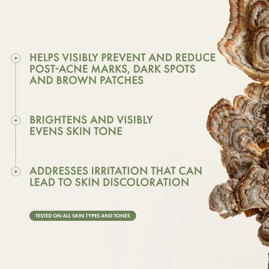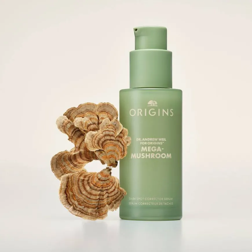 Dr. Weil Mega-Mushroom Dark Spot Corrector Serum er ethøyt konsentrert serum som bidrar til synlig reduksjon av mørke flekker og misfarging for en jevnere, naturlig feilfri hud.