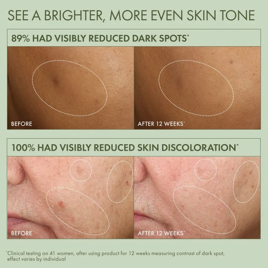 Origins’ innovative tilnærming til å bekjempe hyperpigmentering. Denne formuleringen er rik på risbranekstrakt, samt rosa roxburghii, C-vitamin og Dr. Weils opplysende kompleks, og den jobber målrettet med å redusere synlige mørke flekker og misfarginger. Resultatet er en mer jevn og opplyst hudtone.