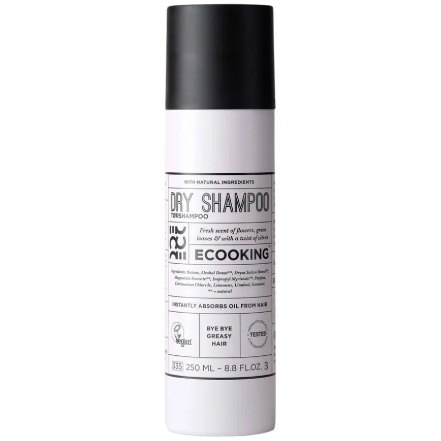 Med ECOOKING sin Dry Shampoo får du volum til håret, et fresh utseende og håret får en deilig duft av blomster, grønne blader og sitrus. I en hektisk hverdag er raske løsninger alt. Dry shampoo er for morgenene du ikke har tid til å vaske håret, men virkelig trenger en oppfriskning. Du påfører Dry Shampoo i håret og deretter absorberer dens naturlige risstivelse overflødig olje uten å tørke ut håret. På den måten fjerner Dry Shampo det oljete utseendet og får håret til å se rent ut på kort tid. Vegansk og dermatologisk testet.