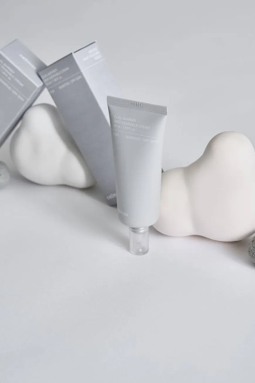 Dual Barrier Skin Wearable Cream er en ultrahydrerende fuktighetskrem som gir umiddelbar lindring for tørr hud, samtidig som den beroliger rødhet og følsomhet.