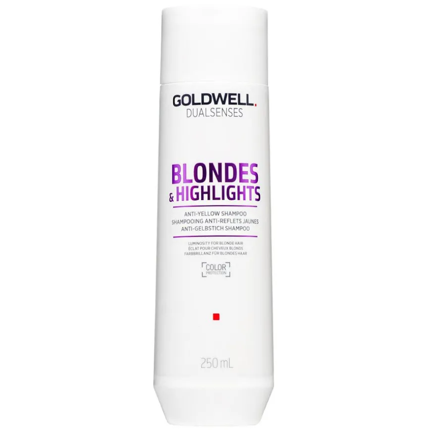 Goldwell Blonds & Highlights er en rensende shampoo for deg med blondt hår og bleket hår. Shampooen reduserer gulskjær og gule toner i håret, slik at håret får en kaldere nyanse.