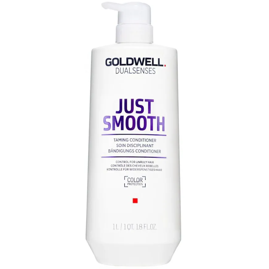 Goldwell Just Smooth Taming Conditioner er en balsam som inneholder glattende ingredienser som gir deg kontroll over uregjerlig hår, frizz og fly-aways.