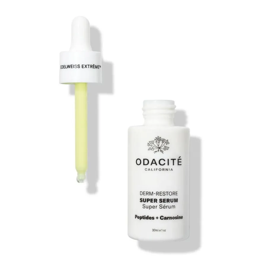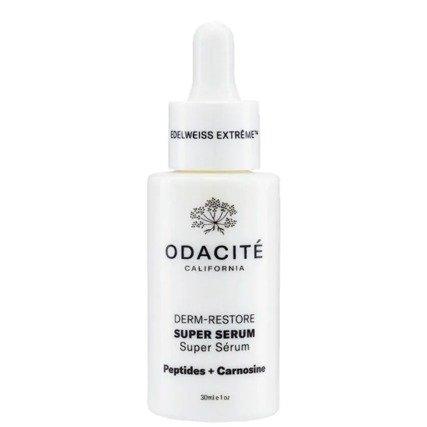 Edelweiss Extrême™ Derm-Restore Super Serum er et høykonsentrert serum som støtter hudbarrieren mot aldring og miljøpåvirkninger. Formulert med AI-drevet Edelweiss, rik på bioaktive forbindelser som Leontopodic- og klorogensyre, bekjemper det fine linjer, rynker, og tap av fasthet. Serumet beroliger huden med aloe vera, ringblomst og kamille, og håndterer tørrhet, irritasjon og betennelse. Den lette emulsjonen føles som et serum, men gir fuktighet som en krem, og etterlater huden plumpet, hydrert og mer ungdommelig med en frisk urteduft.