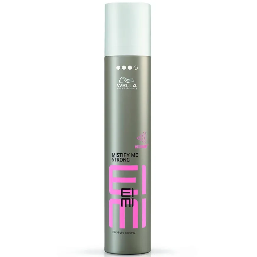 - Bruk Wella Professionals EIMI Mistify Me Strong hårspray sammen med Wella Professionals EIMI Flowing Form hårbalsam og Wella Professionals EIMI Natural Volume mousse for optimalt resultat.